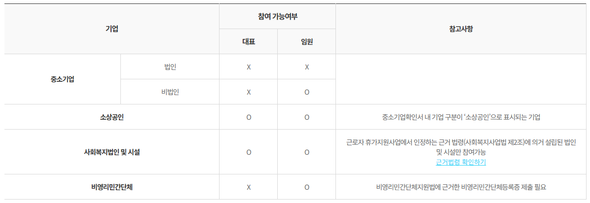 참여 대상: 기업구분과 상관없이 전문직 종사자는 참여 불가 (근로자휴가지원 사이트에서 확인)