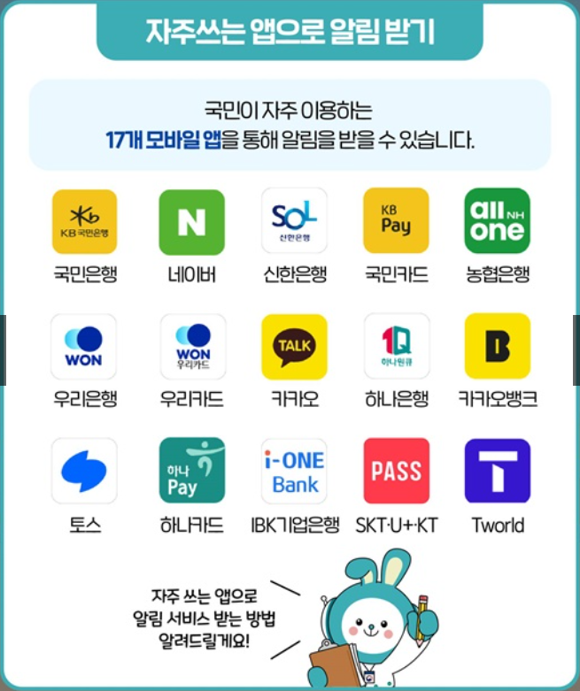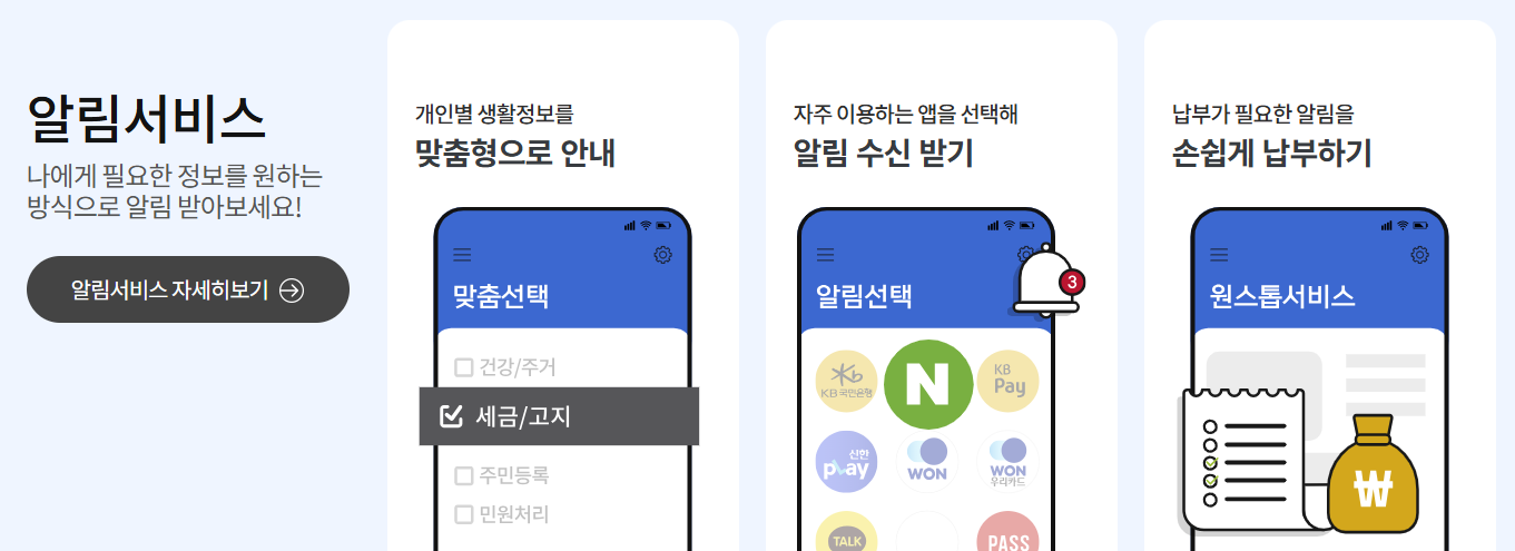 금융정보와 함께 정부 알림도 한 곳에서 관리할 수 있어 실용성과 편의성을 모두 갖춘 방법입니다.