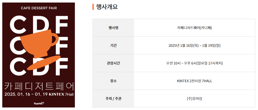 - 장소: 경기도 고양시 일산서구 킨텍스로 217-59, 킨텍스 제2전시장 7홀